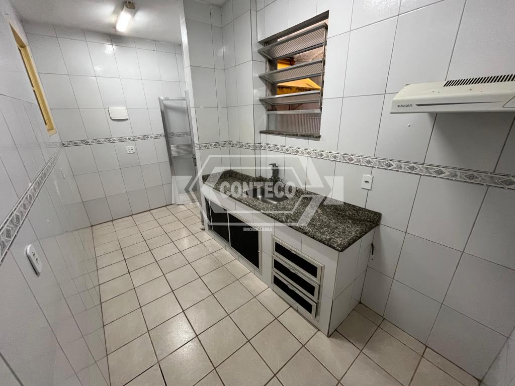 O imóvel, situado no primeiro andar, oferece uma sala espaçosa e aconchegante, ideal para momentos de descanso ou para receber visitas. A cozinha é integrada à área de serviço, garantindo funcionalidade no dia a dia, com um espaço prático para as atividades domésticas.